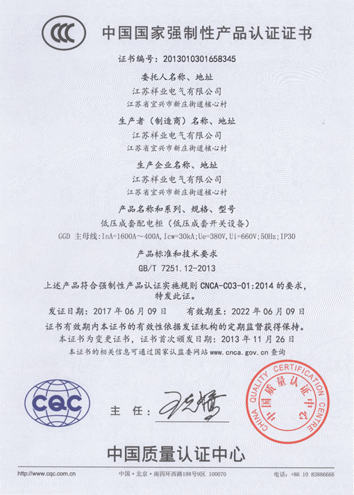 低壓柜3C證書