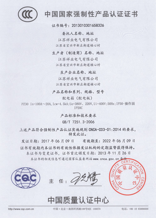 低壓柜3C證書